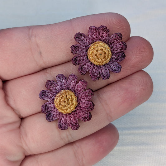 Purple Daisy Micro Crochet Earrings